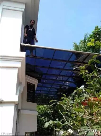 耐力板选用:聚碳酸酯板,极大地提高产品的耐用性,强大的防紫外线功能有效遮挡95%的紫外线。冲击强度是普通玻璃的200以上,防止意外高空坠物。