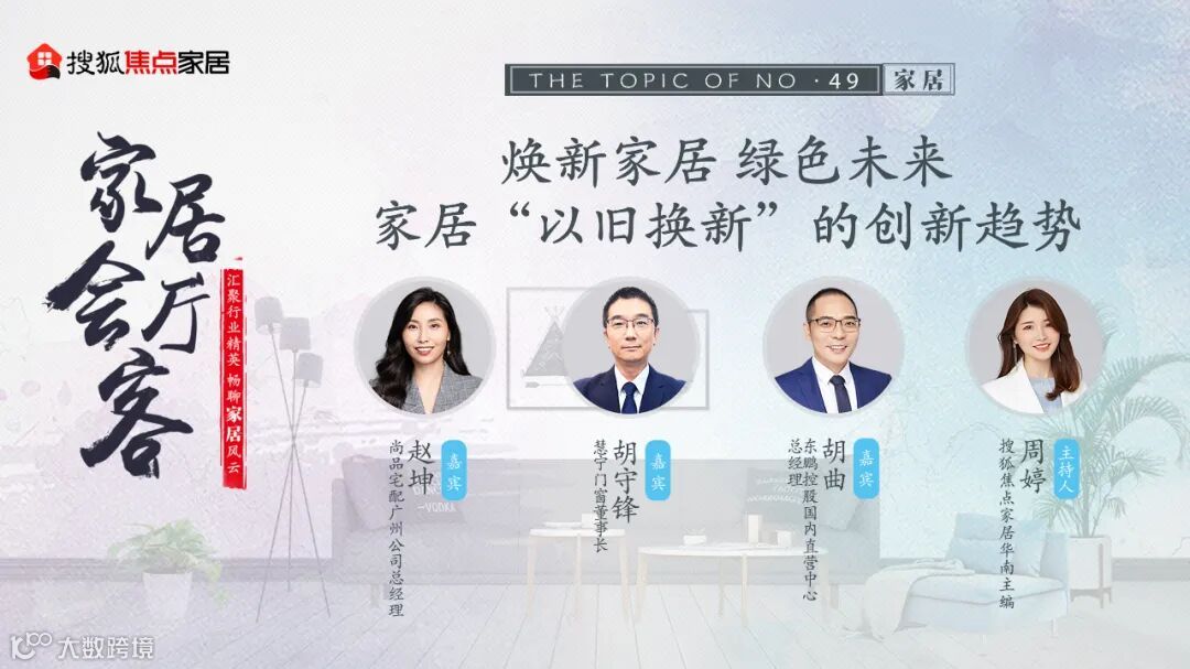 10月18日,由搜狐焦点家居主办的《家居会客厅》——“焕新家居,绿色未来——家居‘以旧换新’的创新趋势”对话沙龙在广州举行。东鹏控股国内直营中心总经理胡曲、尚品宅配广州公司总经理赵坤、慧宁门窗董事长胡守锋三位行业大咖齐聚一堂,就如何应对政策实施、提升消费者体验,以及未来家居行业的创新发展方向展开了深入讨论,搜狐焦点家居华南主编周婷参与主持。