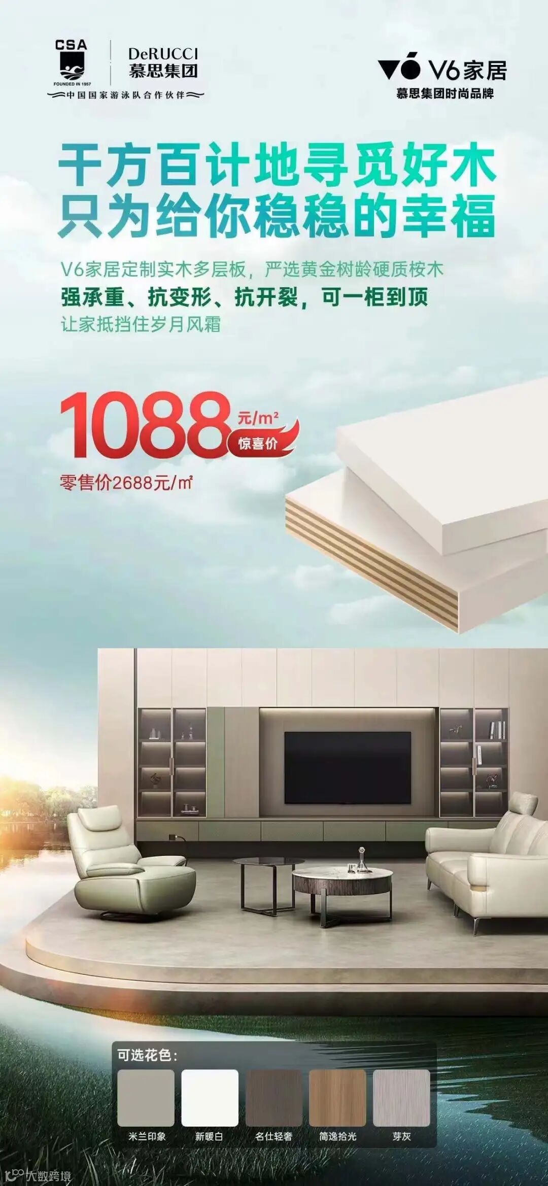V6大家居推出的实木多层板严选硬质桉木,可一柜到顶,千方百计寻好木,只为稳稳的幸福。