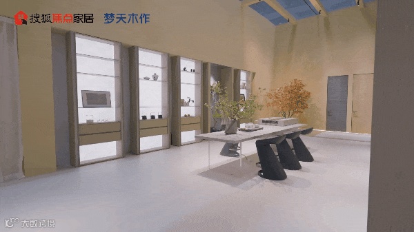 今年梦天木作还打造了独特的静奢茶室空间,茶室以新中式为调性,构建了一个规律明了的情境化空间,独坐于此,尽得诗意静谧生活享受。