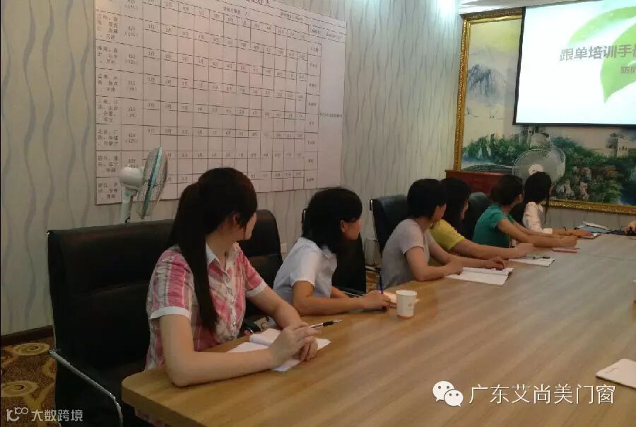 广东艾尚美门窗2014年5月17日,今晨10点整,为更好的服务全国各地经销商以跟单部经理向经理为老师的跟单部产品知识培训正式开始。本次培训内容主要是产品知识的加强!随着销售旺季的到来,艾尚美纱窗订单日益增多,必须对跟单部门进行系统的培训,才能更高效地为经销商服务,把每个订单都处理好。同时,也希望各地经销商在合作过程中对我们的工作能够肯定,我们一直在努力,一直在成长!希望我们以后的合作更加愉快!我们一定会做得更好!