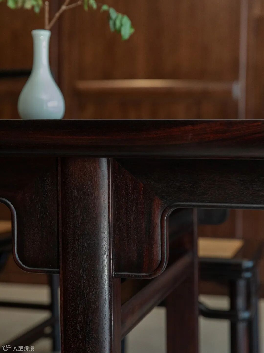夹头榫长茶桌简约的造型重神似,质感圆润,每一个细节都细腻生动。其棱角分明将形刻画出来,同时又显现出深邃的茶韵。