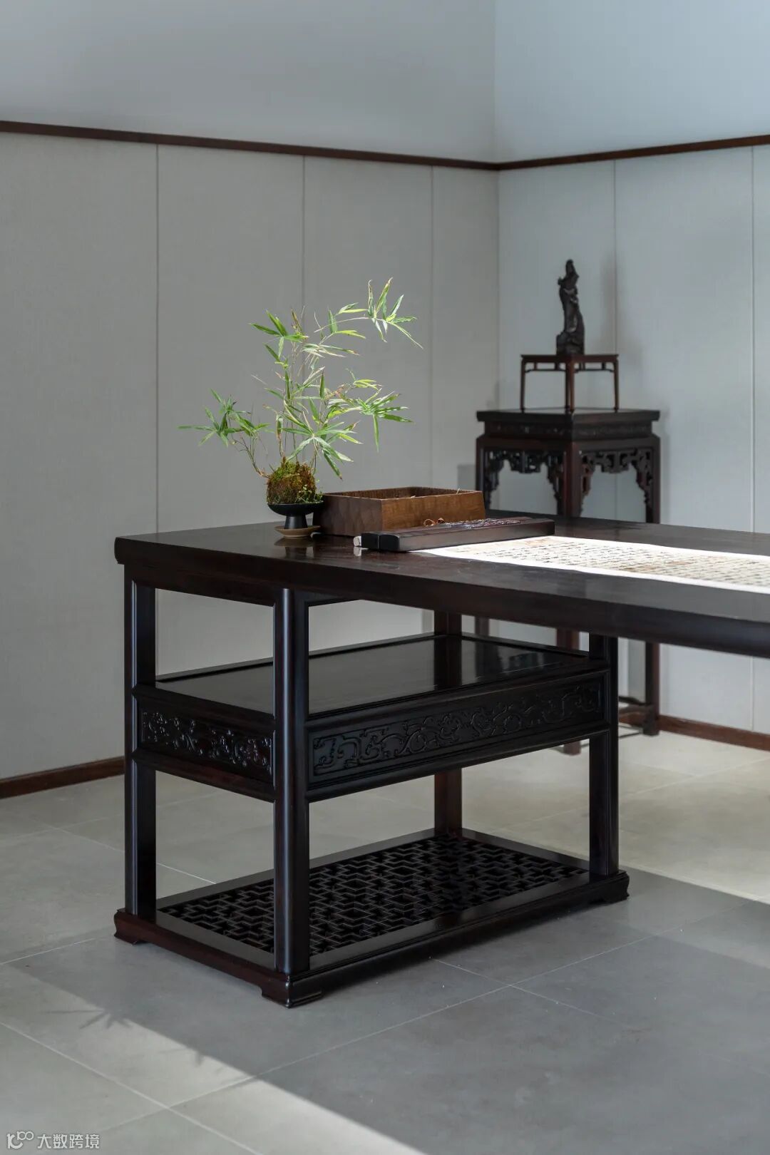 例如玉佛雕件,便是由巧夺天工的雕刻师傅手工完成的,每一处细节都极为精细到位,浑然天成。无数件手工艺术品塑造了集实用、收藏艺术、人文美学、文房雅趣和茶道意蕴等于一体的东家|木竟空间。