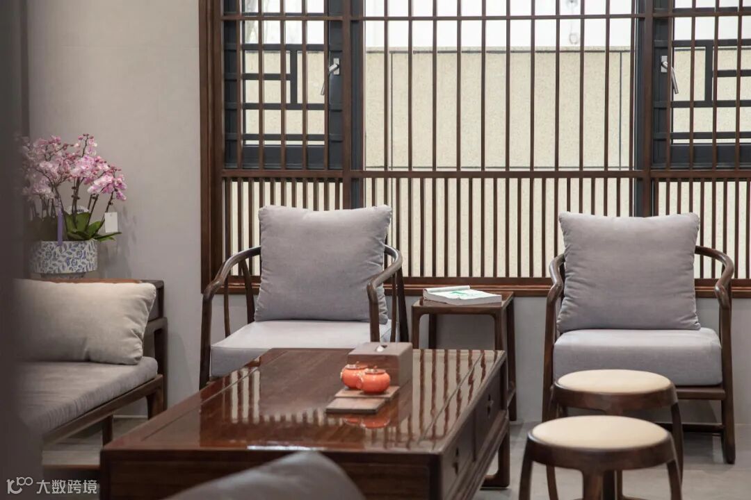 休闲区氛围两个区域,一室以紫檀木为主材,低调轻奢的现代东方格调承接着待客的“以尊”之道。