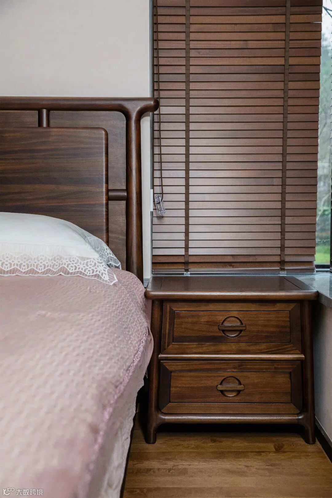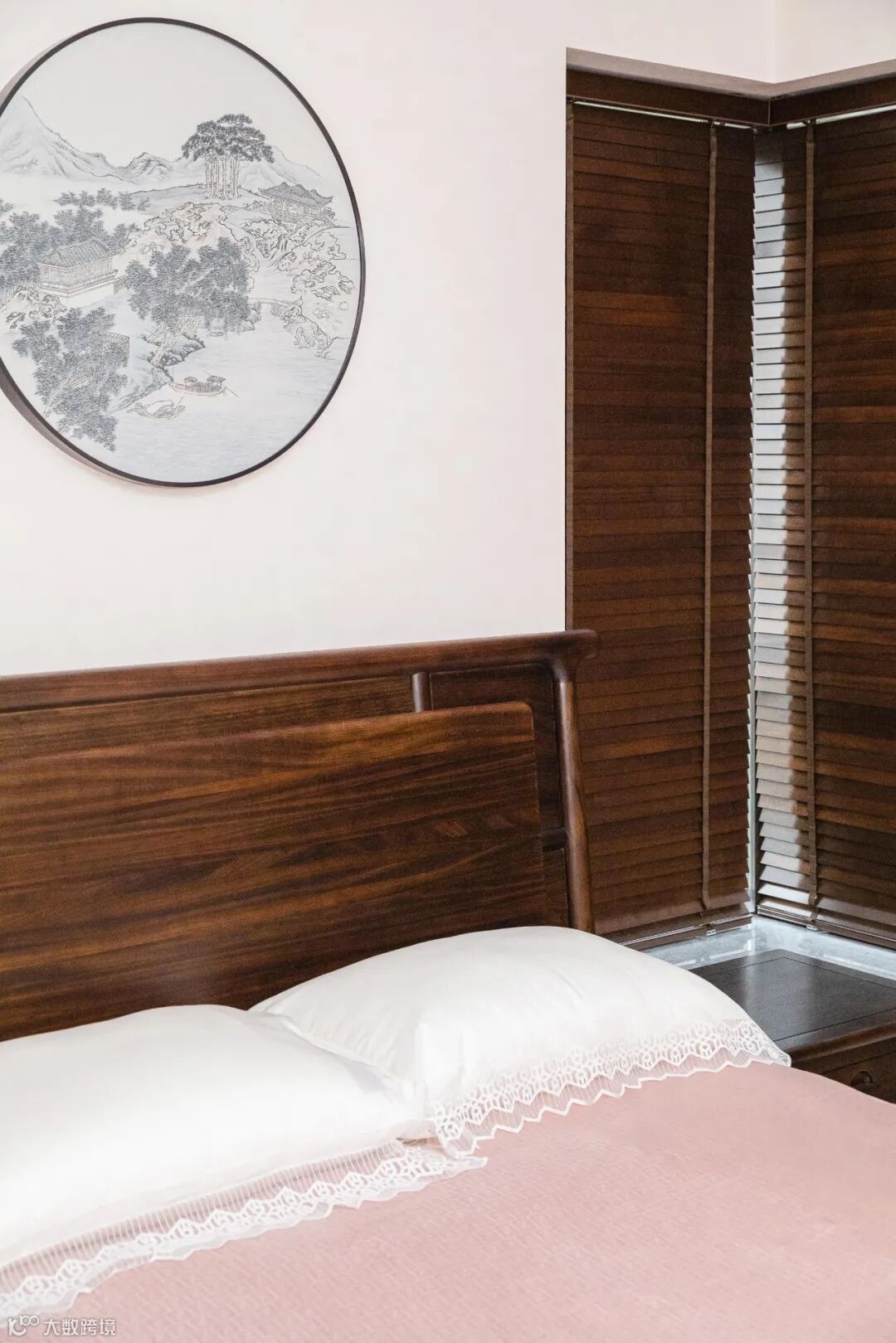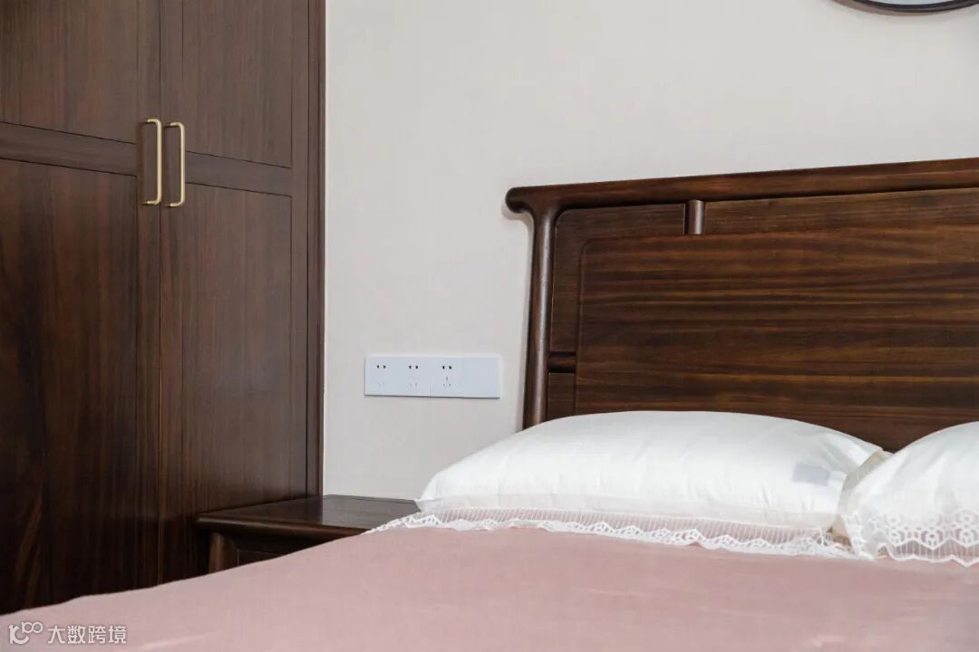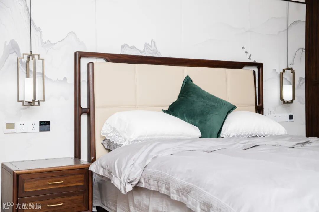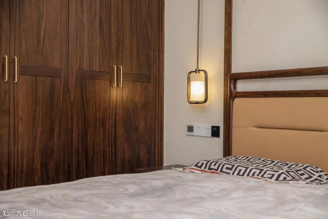卧室作为个人的私密空间,使用柔和的设计语言,让黑檀木的运用更显静谧与祥和,营造出一片安宁、舒心的休憩所。