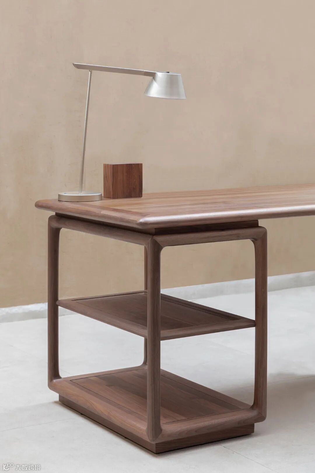书桌造型采用名师家具中经典的架几案设计,