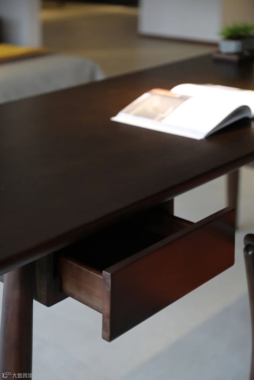 书桌造型大气稳健,每一个桌角都展现着黑胡桃的流畅细腻,简约通透的结构设计更透露出沉静的力量。