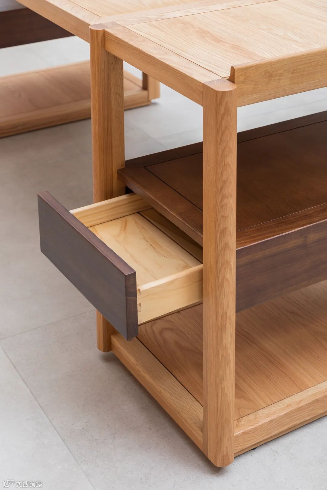形态通透灵动,抽屉运用黑檀色点缀,隔层可以顺