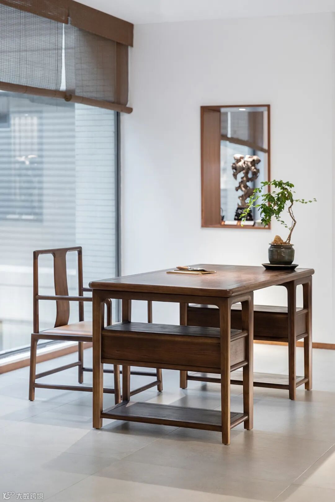 阿禧书桌由利落干练的木作线条与温润有形的简约