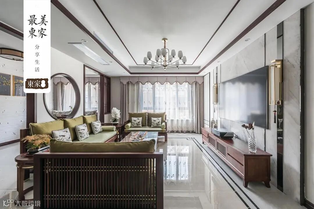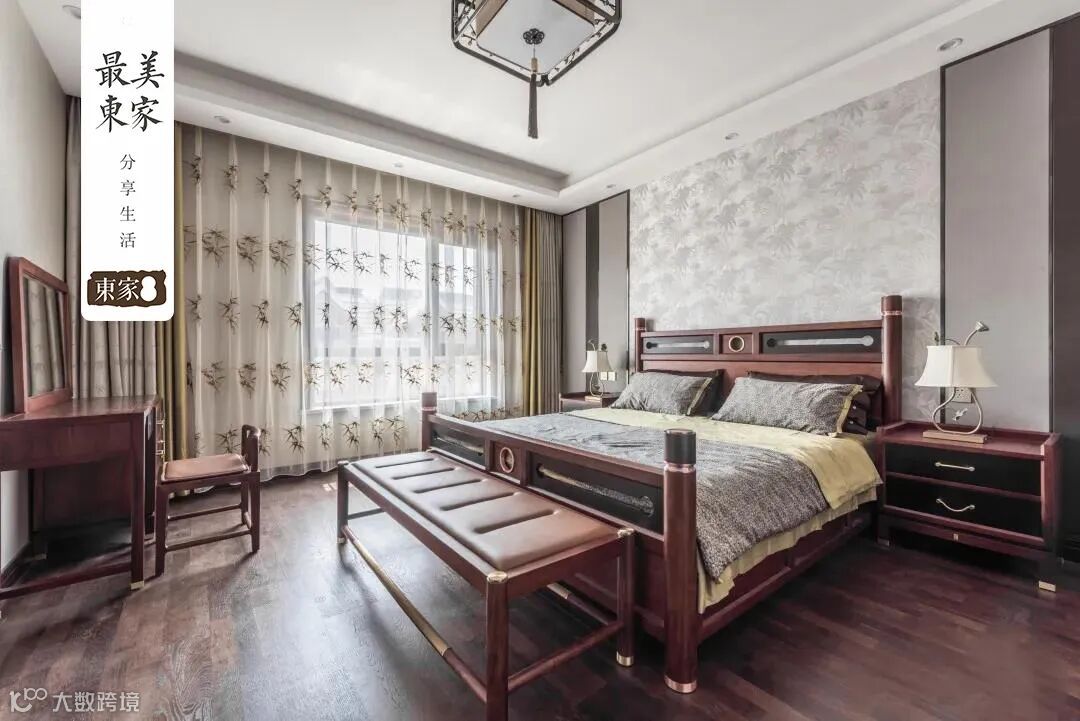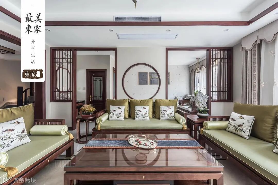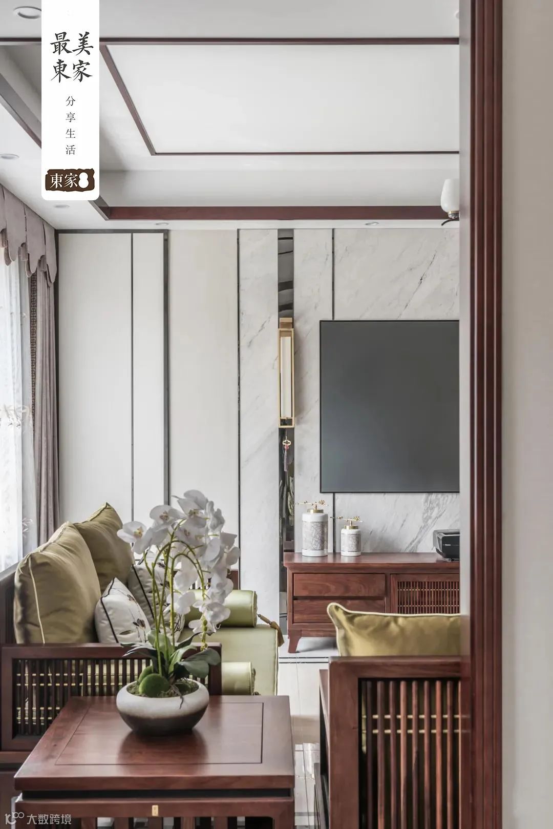东家新中式风格摒弃了过去的精雕细刻、繁复装修,将材质本身的特性放大,使其成为最实用自然的装饰。在需要隔绝视线的地方,则使用线条利落的木格栅、屏风或窗棂,将不同的功能区域分隔开来,让住宅的空间层次更为丰富。