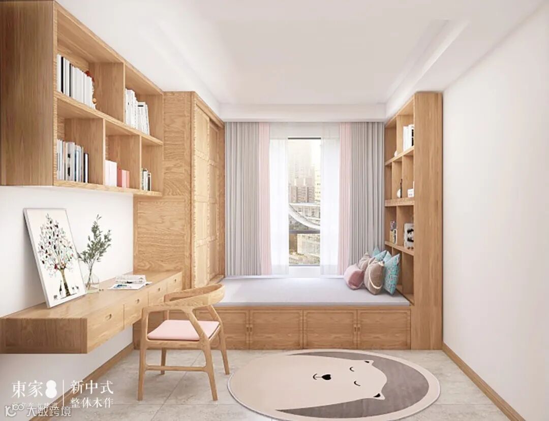 另一个儿童房,则使用了当下最流行的榻榻米式设计。在孩子成长的过程中,物品也会越来越多,“收纳”是儿童房离不开的话题,多功能收纳式组合,完美解决孩子杂物多的烦恼,对孩子而言更是藏宝的乐园。