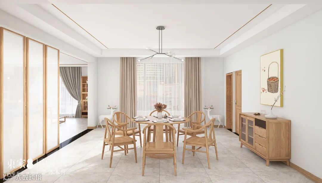 按照业主的想法,希望自己的家,可以打造成一个开阔的空间,把更多的时间花在家人陪伴上,空间上能够有更多的互动交流,这也是他选择大平层的主要原因。因此设计师在户型的改造上,公共区域的面积几乎占全屋的一半,选择白橡木材质的原木色家具,减轻视觉的厚重感,发挥大平层的空间优势。
