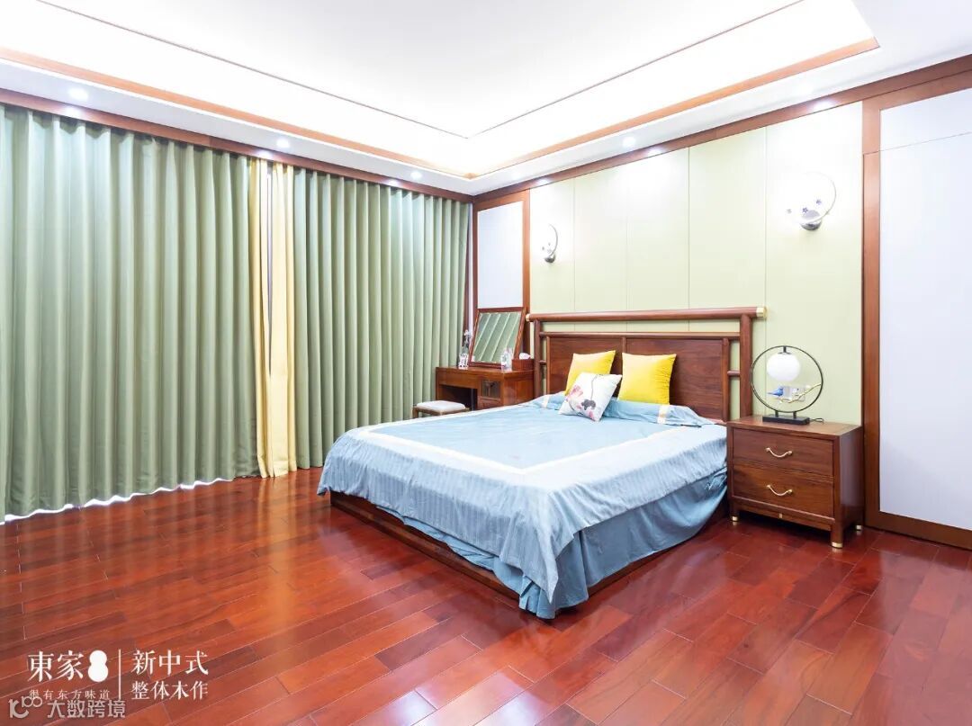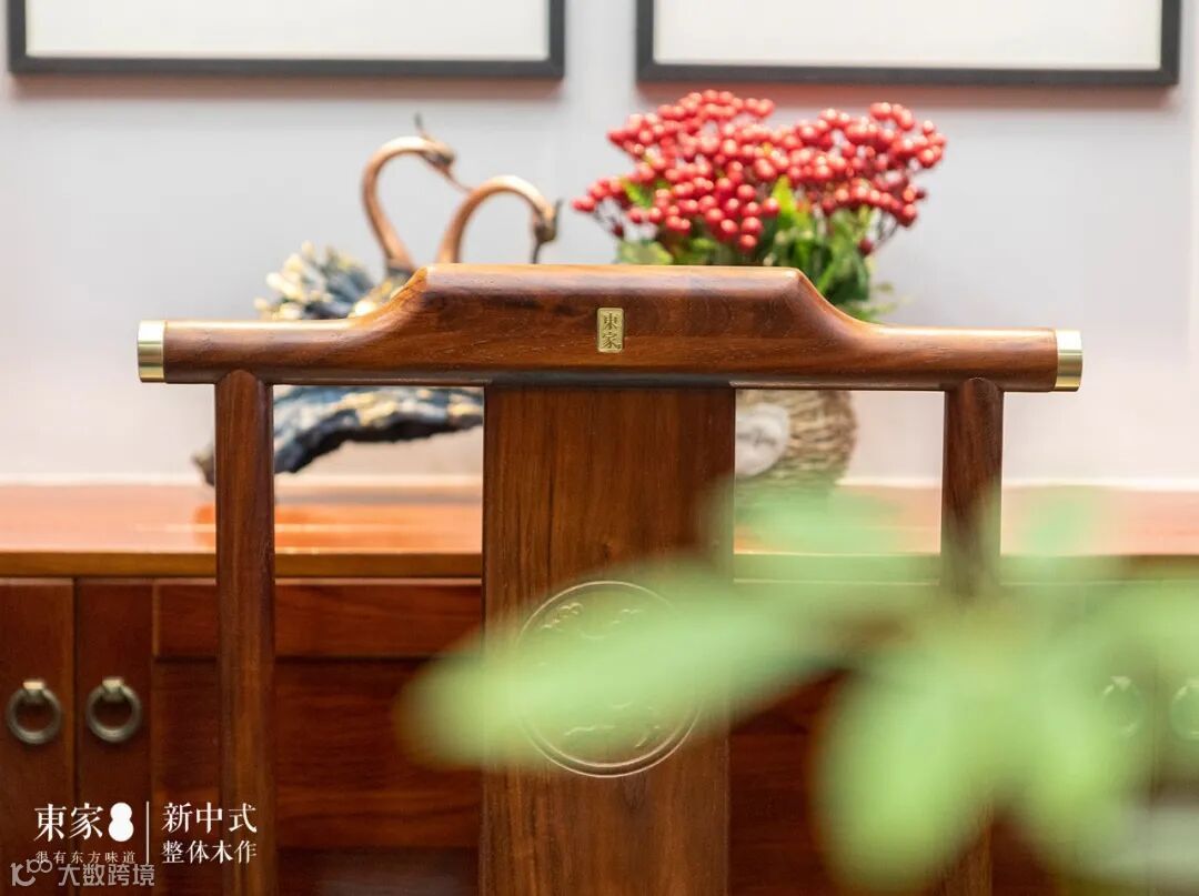 为了让家居的设计风格更加协调自然,李姐与东家大店杨总沟通将部分已经装修好的软装颜色改为与东家花梨木家具的颜色一致,修改后的颜色与东家花梨木家具搭配的相得益彰。李姐还根据东家家具的黄铜拉手设计,在桌面上摆放了同样的黄铜装饰,质感经典,十分赏心悦目!