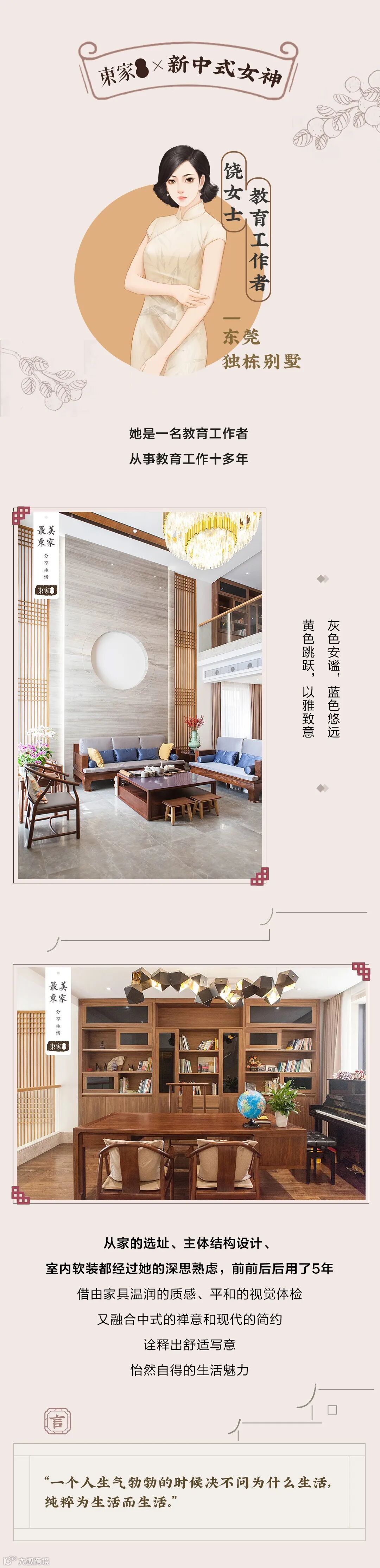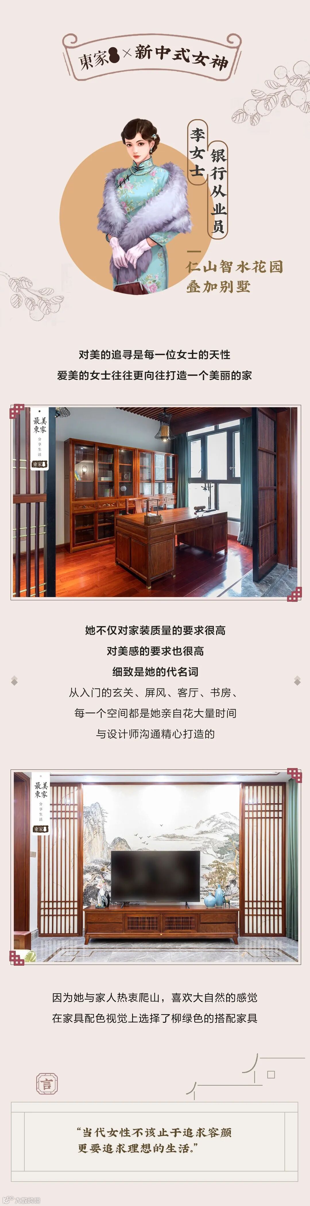 她们有的是全职太太,有的是教师,也有公司的经营者,无论在外界是什么身份,她们都有着相似的共同点,她们既是母亲也是妻子,更是新中式风格的追随者。不惜花费大量时间,从设计、选材到施工,全程亲力亲为,她们对新中式的见解与东家不谋而合,最终在东家的配合下把自己的家打造成心中向往的新中式样貌。