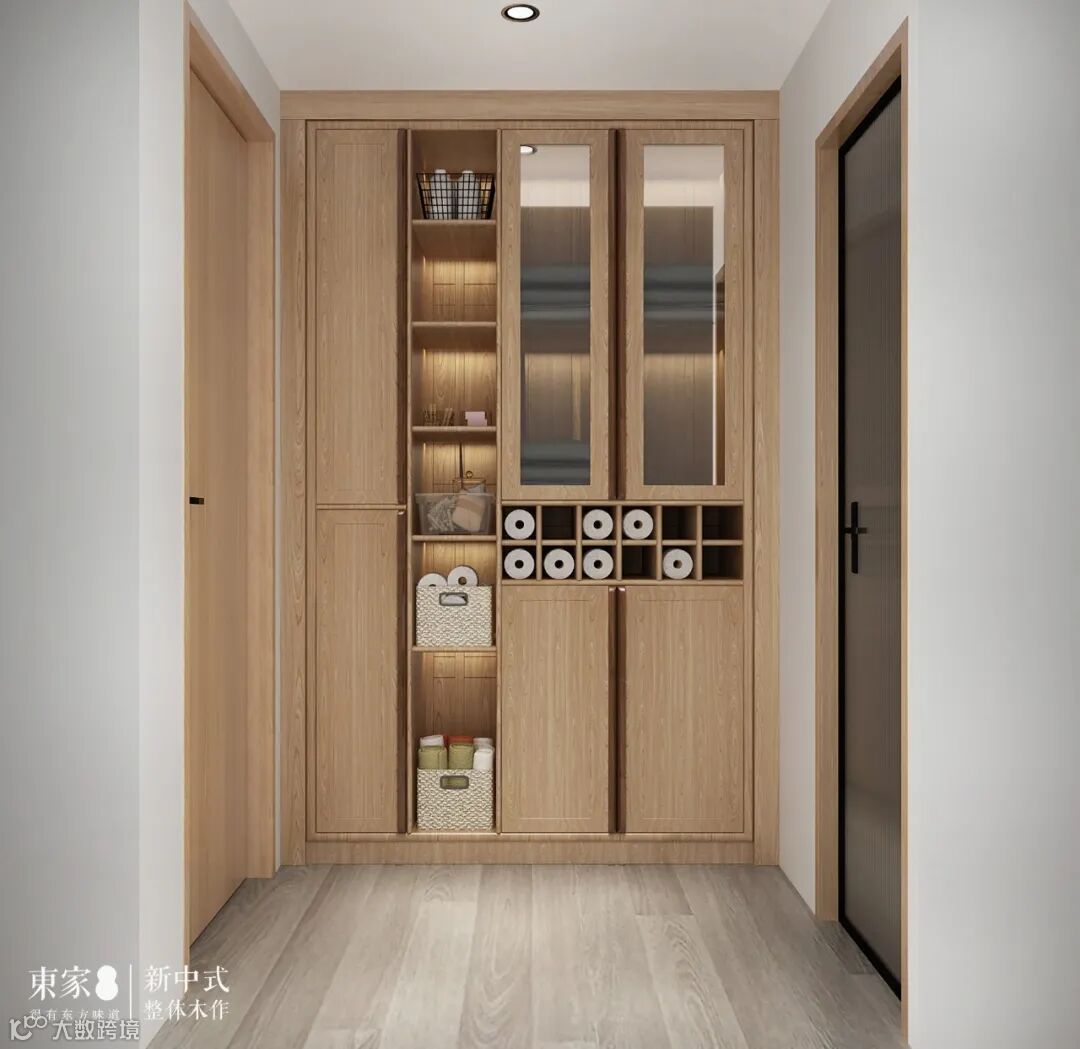 根据次卧门厅的使用实际情况,设置顶墙的门厅柜,外观整洁优雅,实现利用空间弹性收纳,增大门厅的收纳储藏功能,可以让门厅长期保持干净,也能很好的装饰居家环境。