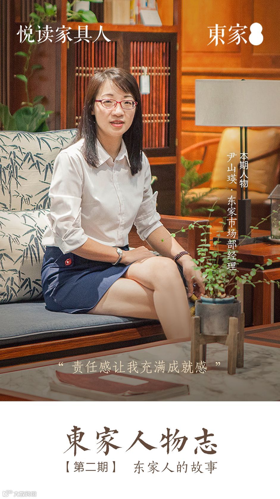 尹山瑛,2014年加入东家,现任东家市场部经理。尹经理带领的团队为全国各地门店铸建着强有力的后盾,从店面装修、氛围把控、产品摆场,到人员培训、活动策划等等,严谨、专业、合作、奉献,用行动再次证明了东家人的实力。无需用喧闹的声响博得眼球,更无需将自己推到镁光灯下,她说:“在我们这个岗位上,最重要的还是责任感。”