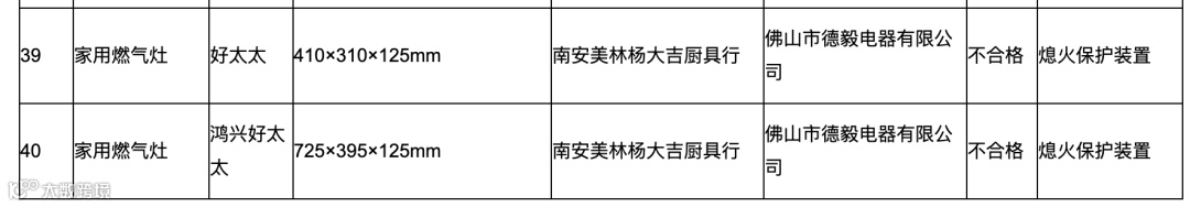 据泉州市市场监督管理局发布的抽检报告显示,商标为“好太太”和“鸿兴好太太”的家用燃气灶产品“熄火保护装置”项目不合格,标称生产企业均为佛山市德毅电器有限公司。