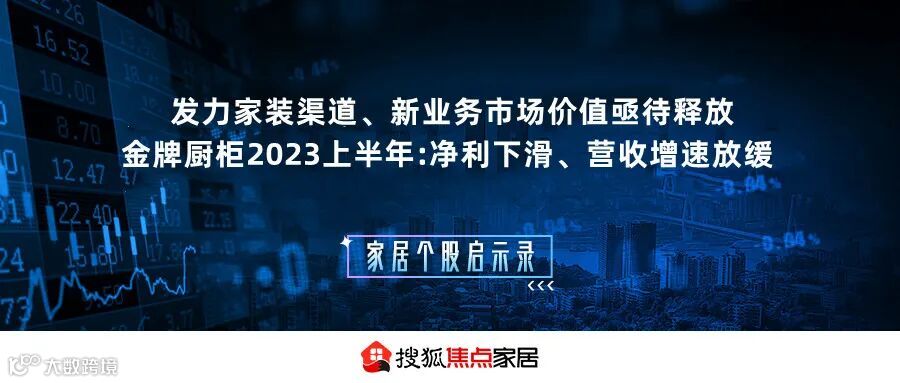 截至2023年6月30日,公司金牌厨柜门店1833家(含在建店),金牌衣柜门店1168家(含在建),金牌木门店及专区649家(含在建店、专区)。此外,公司大宗渠道实现营业收入5.22亿元,同比增长7.60%;海外渠道实现销售收入1.24亿元,同比增长2.22%。