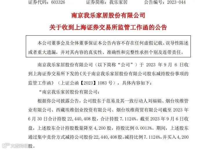我乐家居股东被立案调查