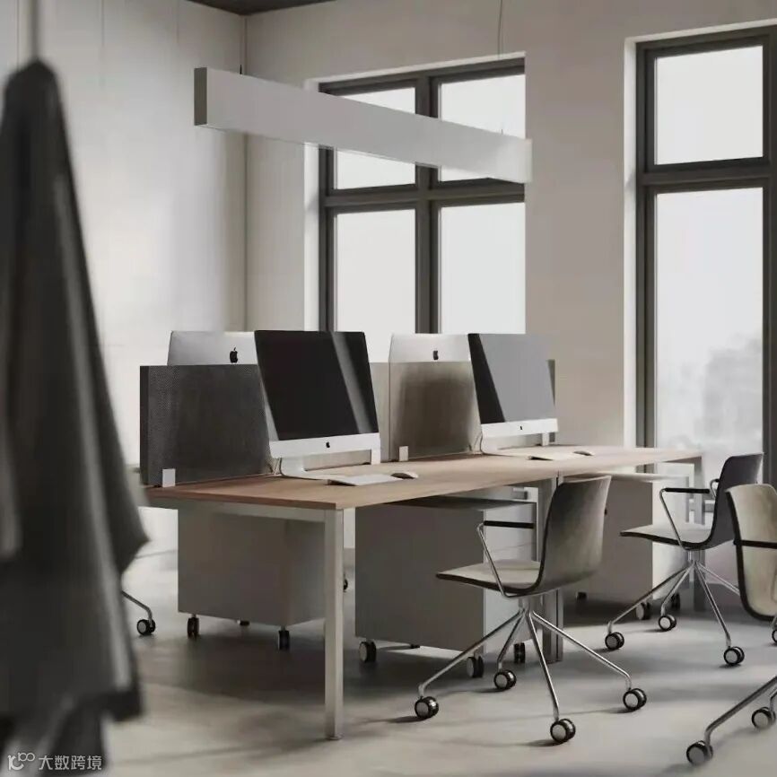 甚至办公室内的吊灯都是非常规则的条形设计,整体造型看上去整齐划一,非常有层次感和和谐之美。工厂化式办公室的主要组成部分——桌椅,则选用较淡的白色、米色,既不影响整体的工业风格,又为整个装修设计增添一份朴实的气息。
