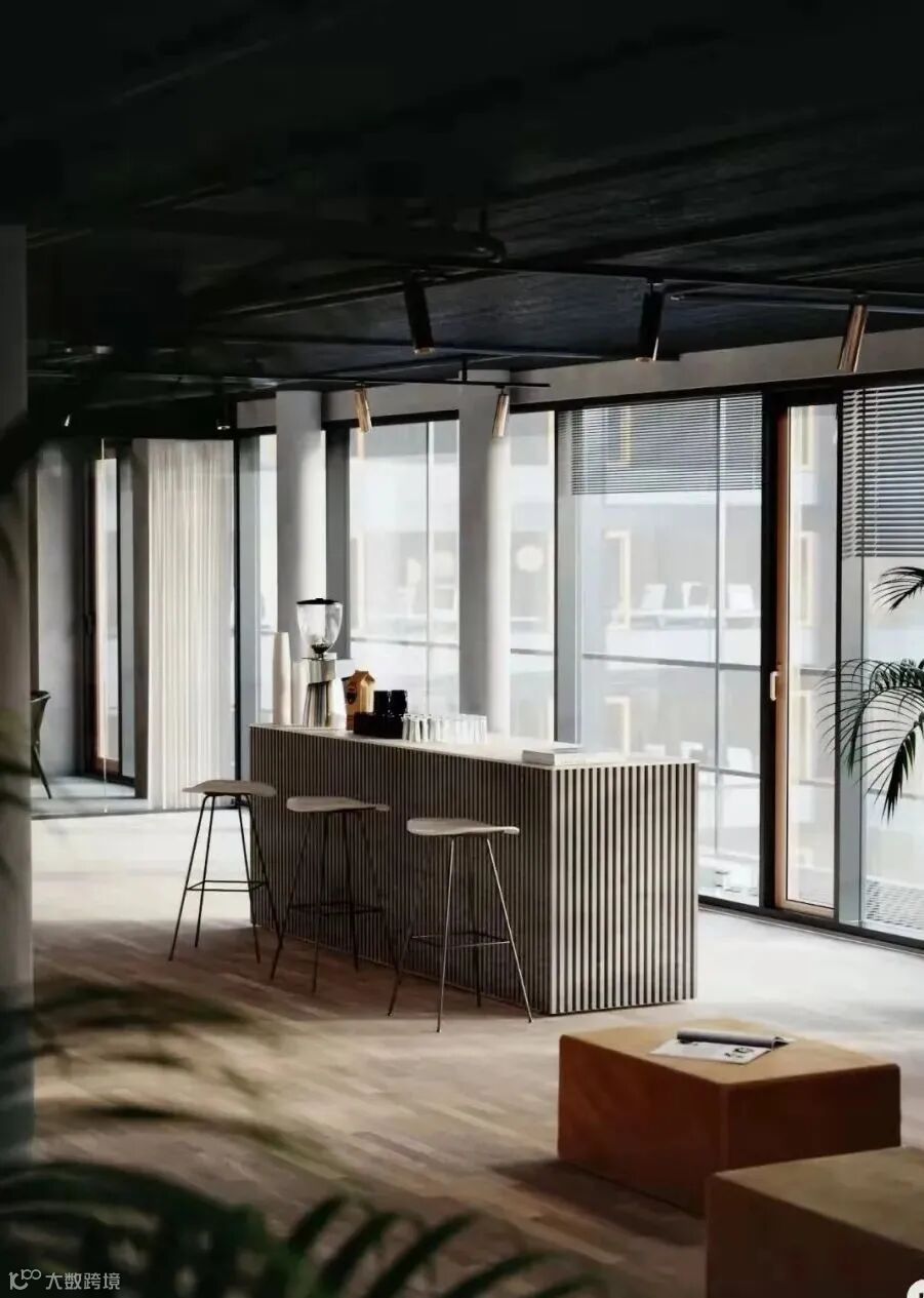黑色和白色搭配可以说是工业风格中最常见的颜色之一。就拿以上工业风格的装修效果图来说,它的办公室是最经典的黑色,白色作为主色,房子的吊顶是非常原始的水泥裸露风格,上面没有多余的装饰,而是直接把粗犷的水泥色展示出来。