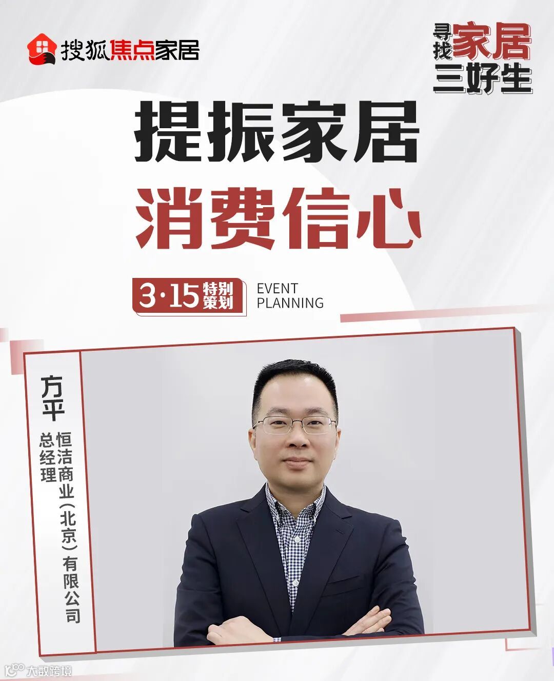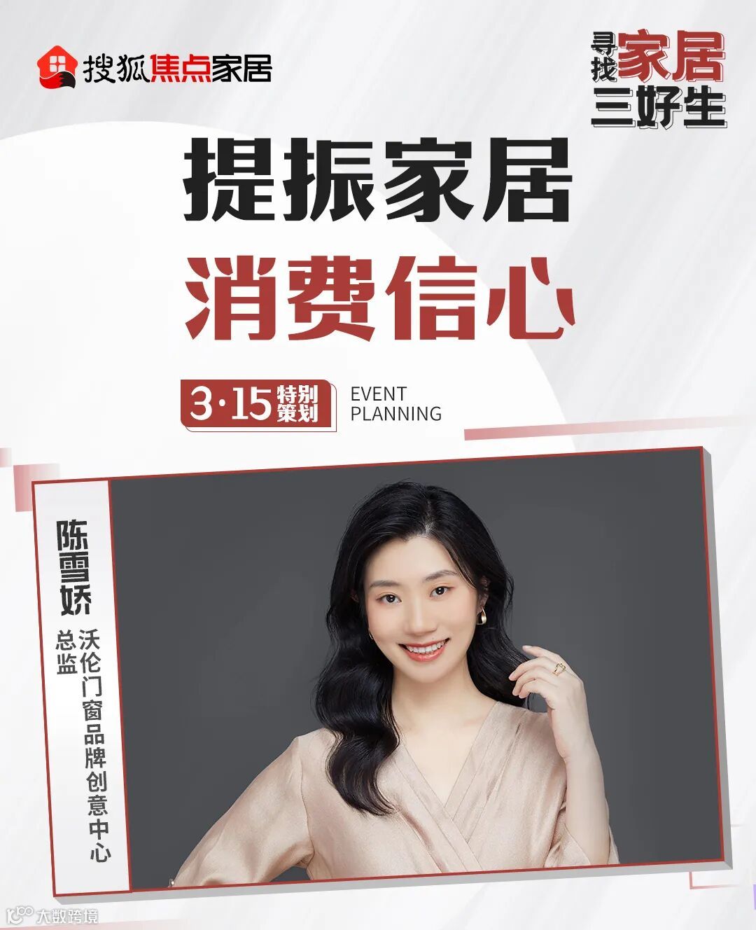 3·15消费者权益日来临之际,搜狐焦点家居特别“提振家居消费信心”主题活动,北京、上海、广州全国三地三场对话沙龙,3月15日下午在北京专场,恒洁商业(北京)有限公司总经理 方平、沃伦门窗品牌创意中心总监 陈雪娇、宇曼家居营销副总经理 谭俊峰做客搜狐演播室,就家居市场消费现状、企业有何创新举措等议题展开分享讨论,搜狐焦点家居全国主编 刘耀儒参与主持。