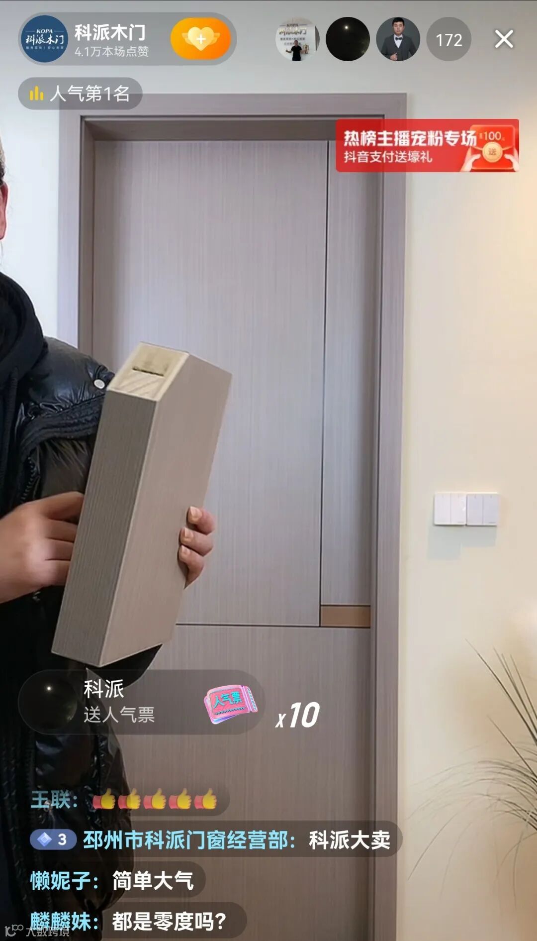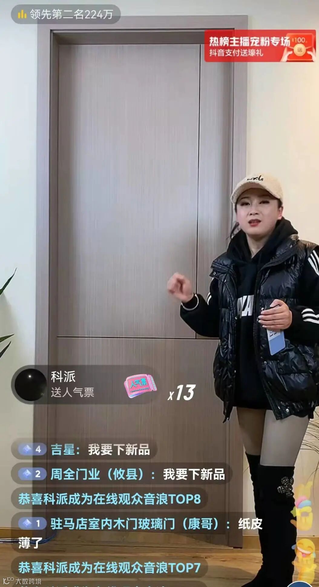 整个直播过程中,零度系列木门凭借优秀工艺以及极简的造型,吸引了众多经销商和消费者的青睐。在直播过程中直播间氛围高涨,不断有经销商留言预约下单,直播结束后,科派收获众多经销商订单,零度系列获得市场认可。