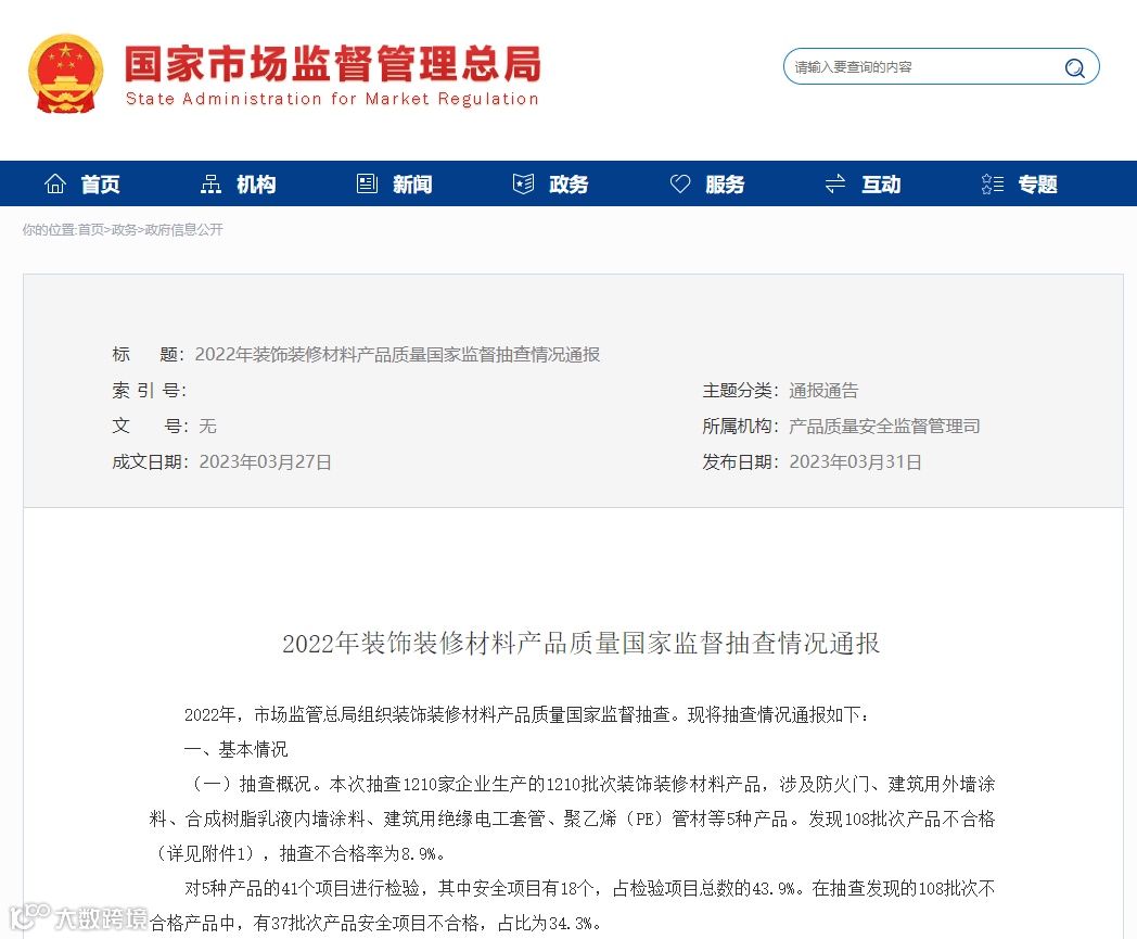 2022年108批次装饰装修材料不合格