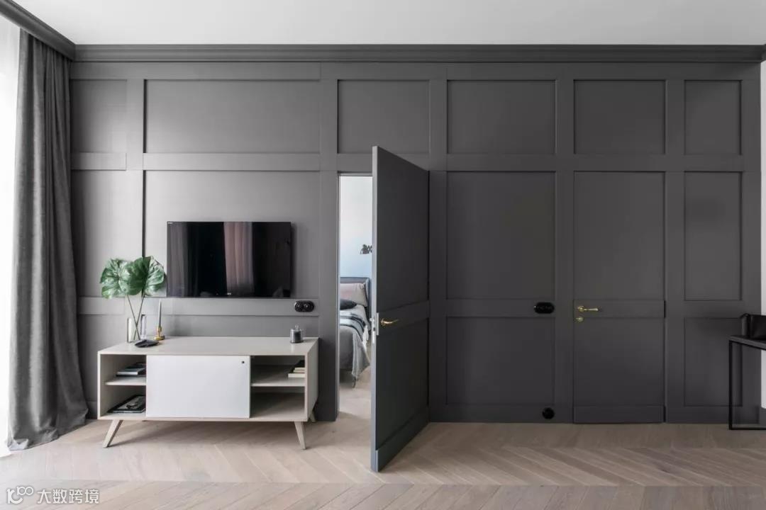 也有纯粹从墙面做门的,大多是选择与相邻墙体相同的材质,从而达到“隐形”于墙面的效果。