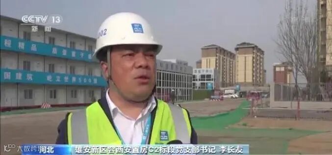 雄安新区容西安置房C2标段党支部书记 李长友:建设者24小时轮班作业,同步引入BIM动画、机器人等全新技术,全面保证施工质量,如期完成安置居民回迁任务。