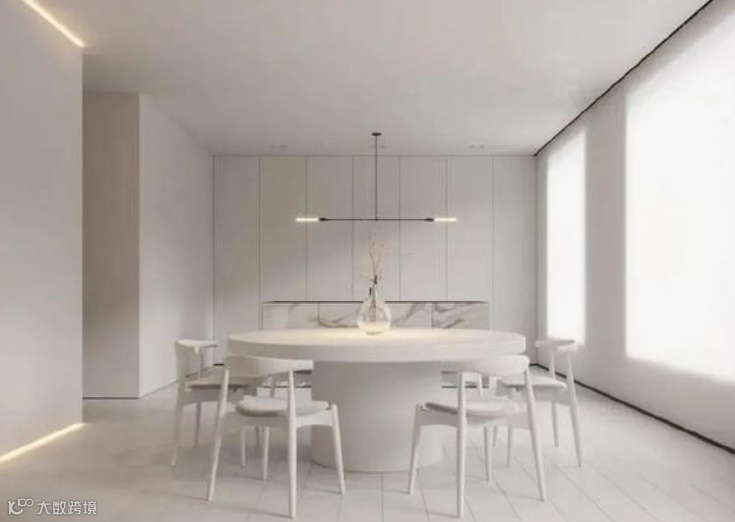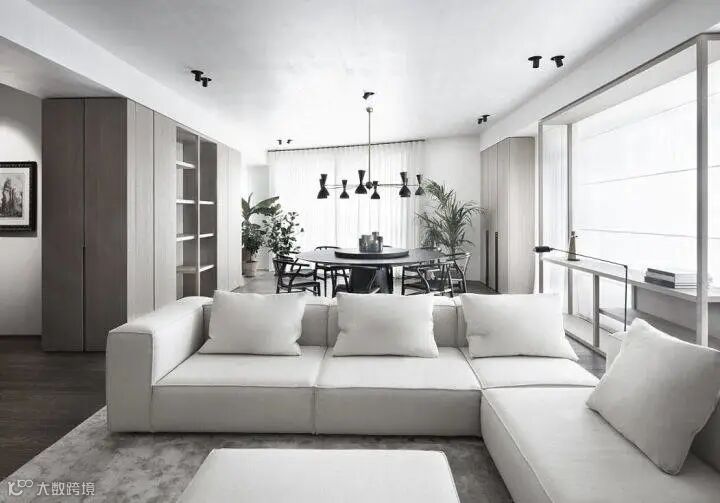 此外,白色是许多喜欢现代风格人士的白月光,纯净、简约、明快,以纯净白为主色调打造整个家。再巧妙搭配一些金属元素和绿植,不仅提升了整体的时尚感,还能呈现出干净清爽、通透明亮的效果。