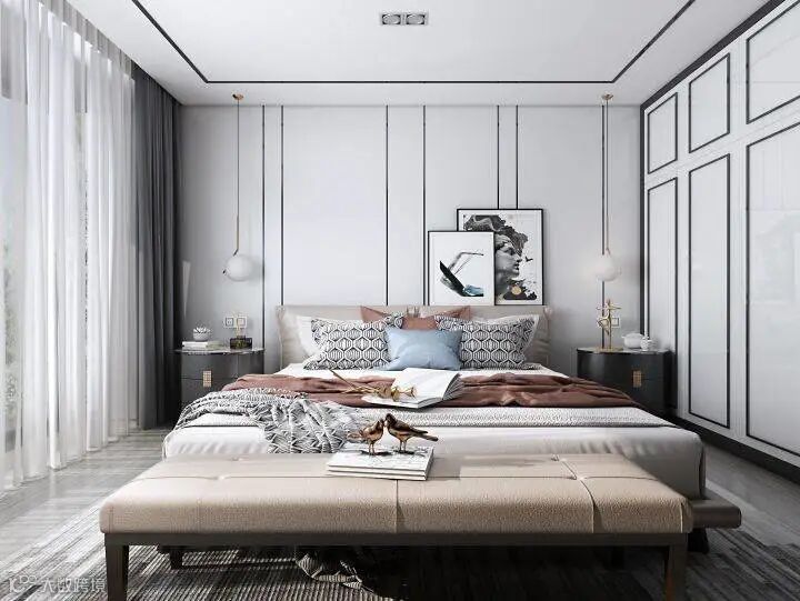 空间拥挤会加剧人在夏季的焦躁心情,体量感大的家具应避免大量配置,因为在视觉上更加拥挤,甚至给人无法呼吸的感觉,尤其是落地式的床、柜子等,让空间压力感瞬间拉满。