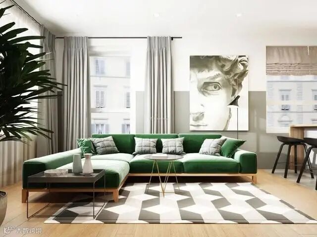 在客厅、卧室各类环境之中,运用绿色作为主色调,很好的可以结合地板和木质家具本身的气场,形成森林化的视觉盛宴,搭配浅色系地毯,给人清新怡然的感觉。