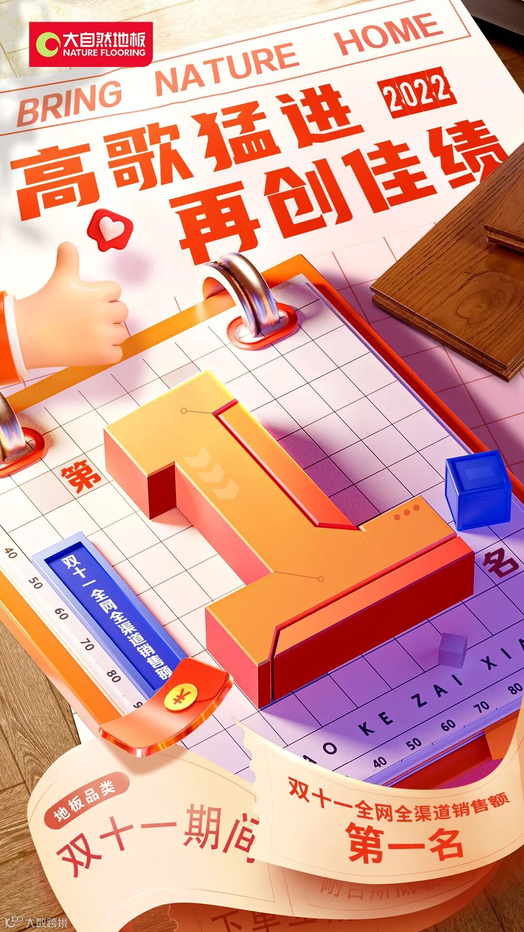 佘嘉浚:“抢攻”是大自然家居2022年主题词。2022年是机遇和挑战并存的一年,今年以来,大自然人顺应时势,找准定位,找到赛道,抓住机会,在2022年全力抢攻,交出了一张张亮眼的成绩单,10月大自然地板实现逆势增长,双十一实现了“四冠王”。
