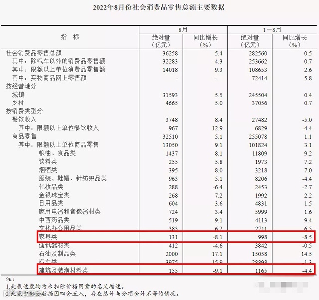 9月16日,国家统计局发布8月份国民经济运行情况。数据显示,8月份,社会消费品零售总额36258亿元,同比增长5.4%,然而,8月全国规模以上零售单位销售的家具额为131亿元,同比下降8.1%。