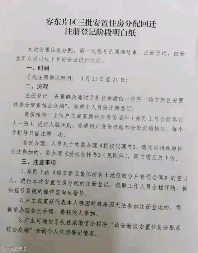 2021年,雄安完成了两批回迁。进入2022年,第三批回迁又要开始了。据有关媒体报道,容东第三批安置房回迁时间的时间安排已经确定。4月6日-12日进行现场摇号,第三批回迁业主将喜气洋洋搬新家。