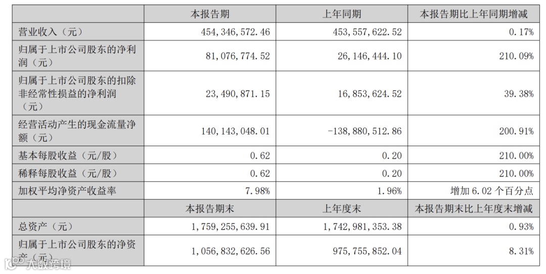 友邦吊顶(002718.SZ)8月24日晚间发布半年度业绩报告称,2022年上半年营业收入约4.54亿元,同比增加0.17%;归属于上市公司股东的净利润约8108万元,同比增加210.09%;基本每股收益0.62元,同比增加210%。拟不派现、不送红股、不转增。