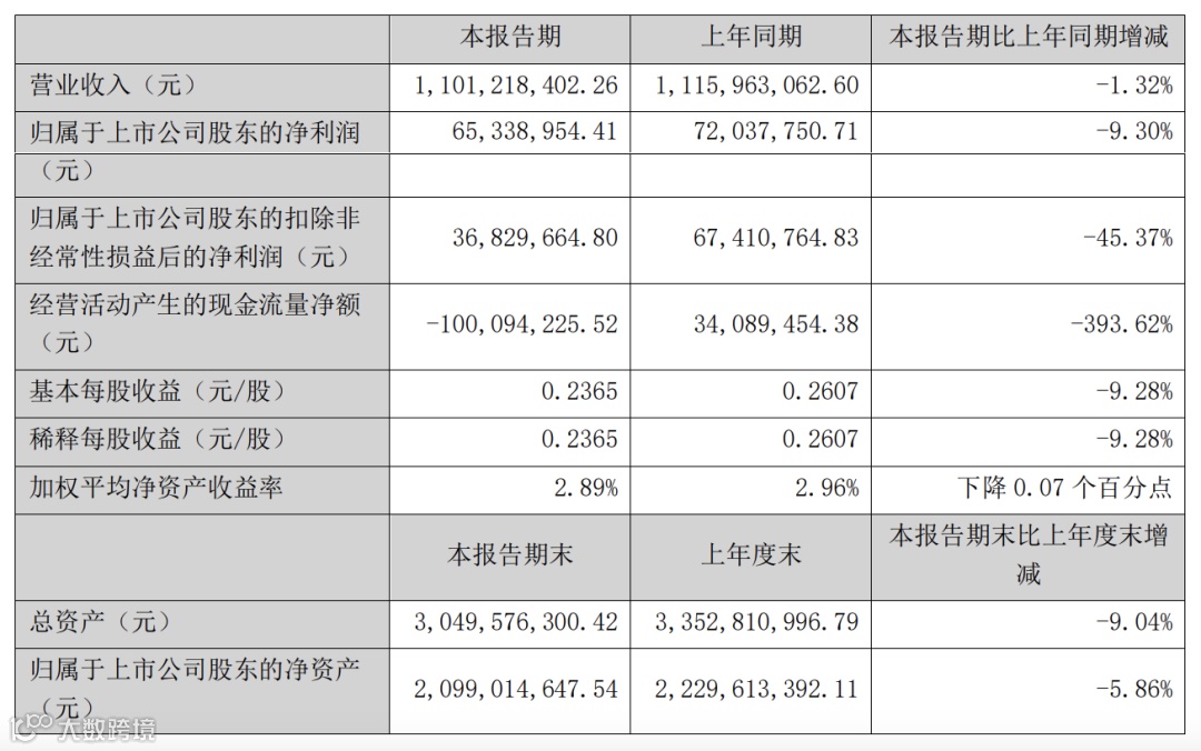 三雄极光(300625.SZ)8月24日晚间发布半年度业绩报告称,2022年上半年营业收入约11.01亿元,同比减少1.32%;归属于上市公司股东的净利润约6534万元,同比减少9.3%;基本每股收益0.2365元,同比减少9.28%。