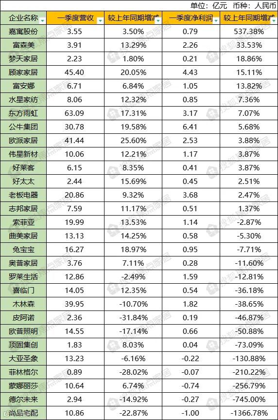 29大家居企业2022年一季报:5家亏损