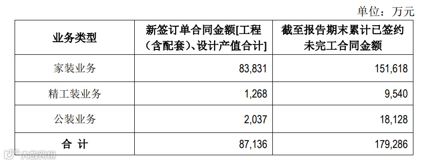 新签家装订单8.38亿元