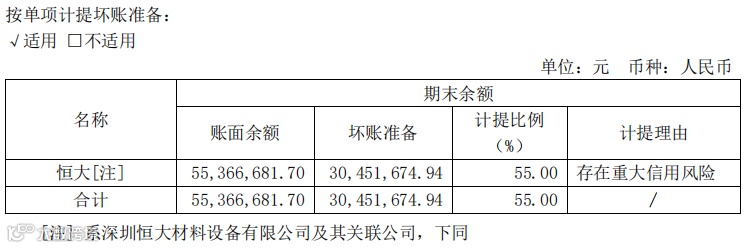 根据奥普家居4月29日发布的2021年年报显示,与深圳恒大材料设备有限公司及其关联公司相关的账面余额为5536.67万元,计提坏账准备3045.17万元。