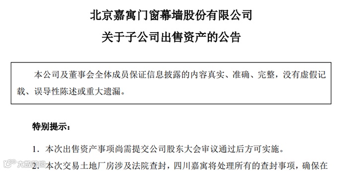 对于本次资产出售,嘉寓股份表示,四川嘉寓本次资产出售目的是盘活资产、筹措资金,补充流动资金,优化债务结构。