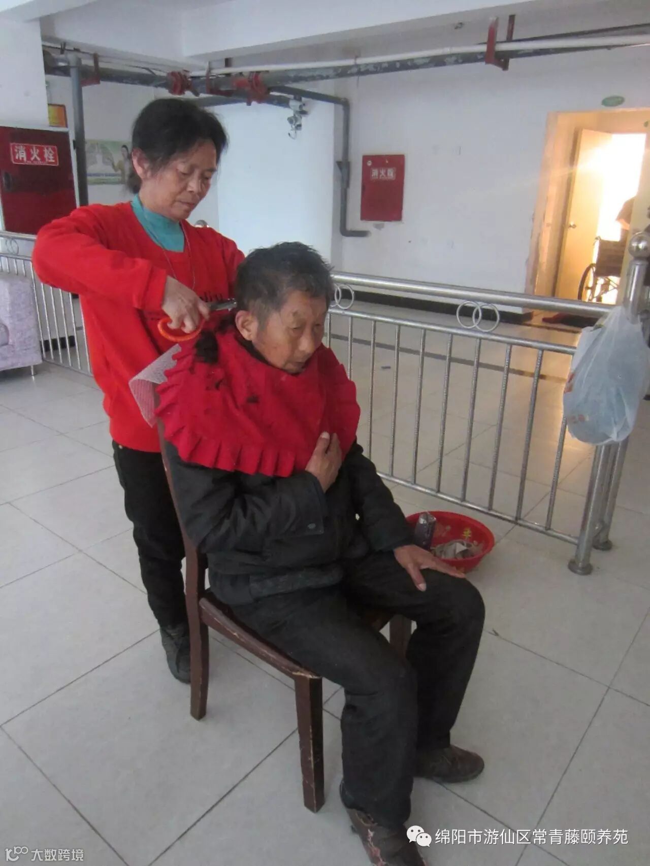 下图为阿姨们为老人们理发、洗头、吹干,让老人们的精神面貌焕然一新。