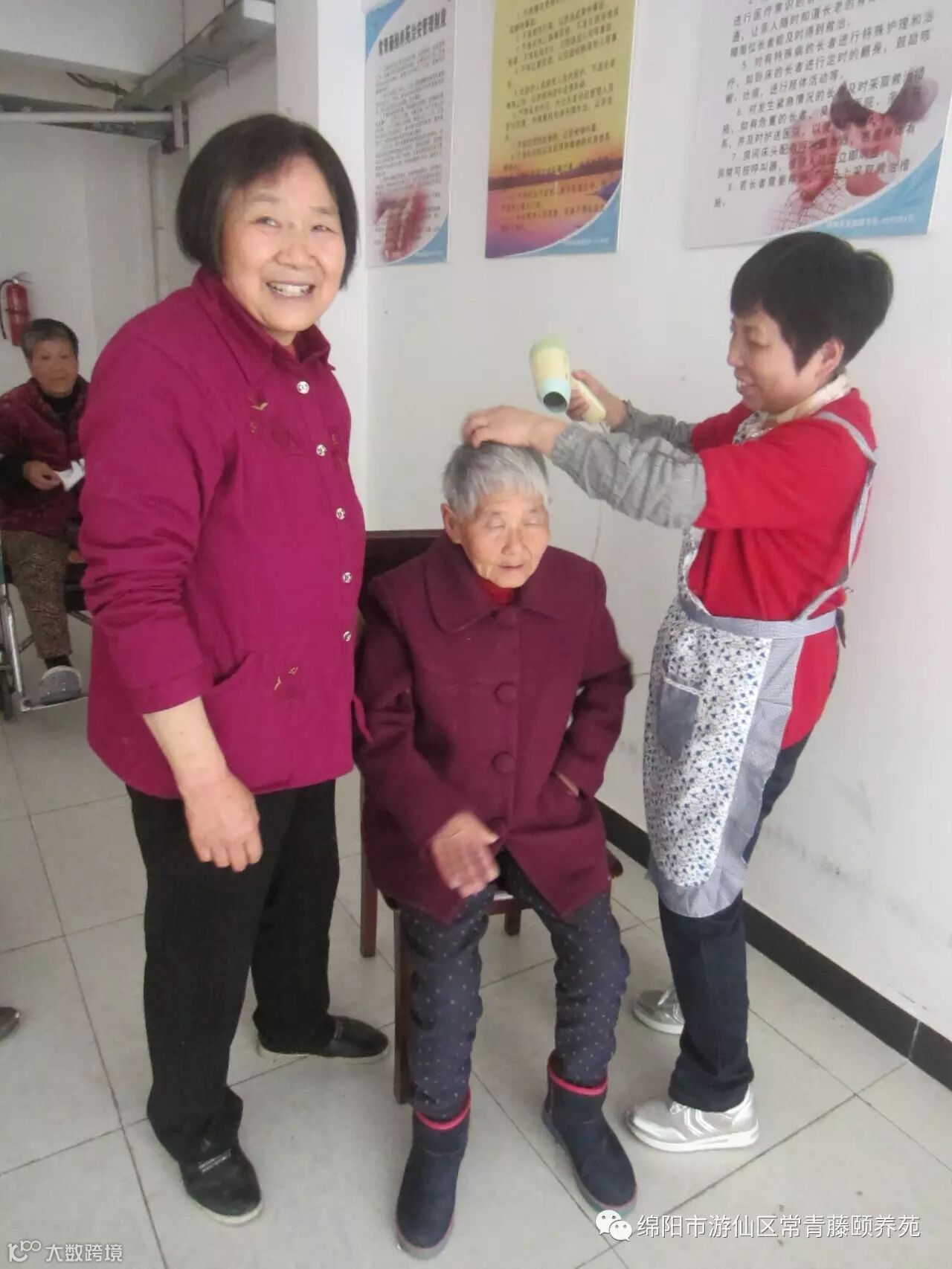 2017年4月10日,来自绵阳市的社会义工来到我苑,自带了理发工具、洗头用品、电吹风和蛋糕点心等,为老人们献上了她们的爱心,她们也是年过半百的人,然而因为一份爱、一份热情,她们义不容辞地来到老人们身边,散播着她们对老人的爱,在她们为老人们服务的同时,我们也祝福她们身体健康!好人一生平安!