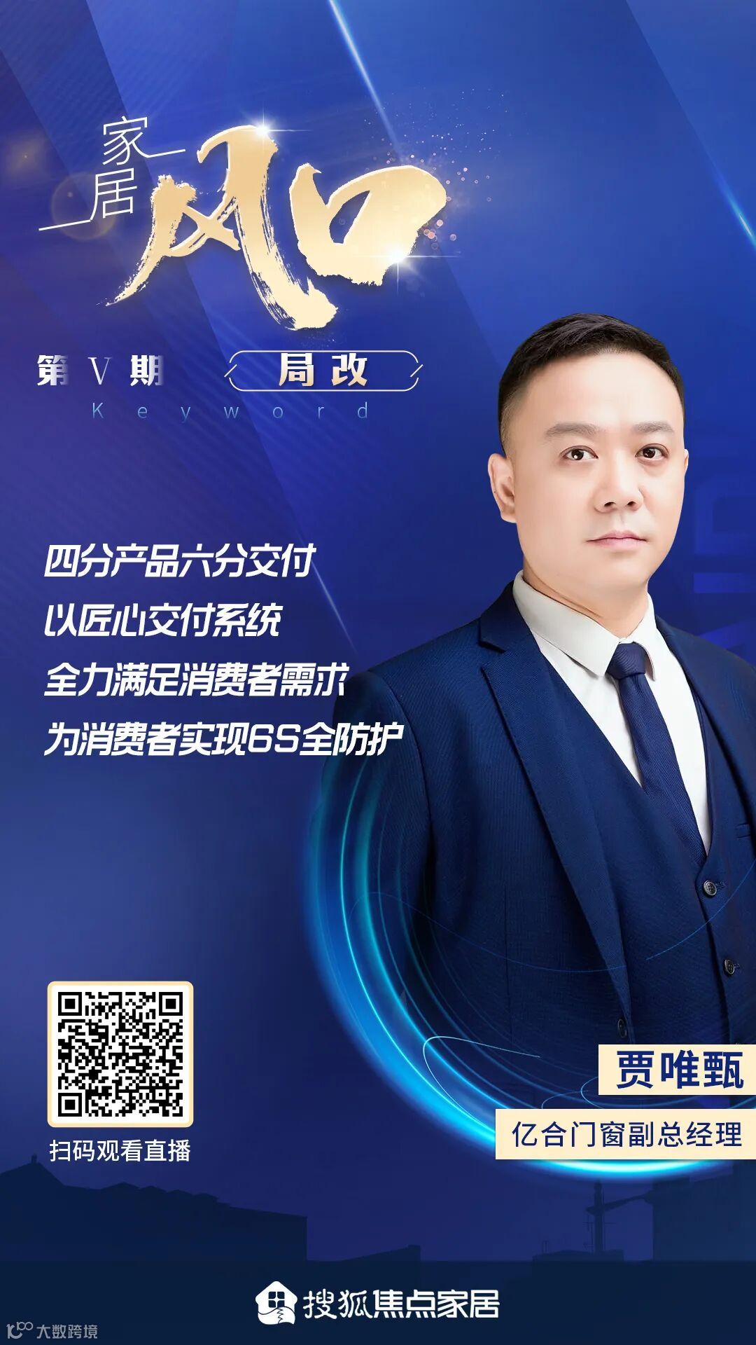 6月10日,搜狐焦点家居原创栏目《家居风口》聚焦“局改”,亿合门窗副总经理贾唯甄作为行业代表,与苏米厨集成灶董事长崔金磊,瑞博文·融发装饰总经理汤谨宾、圣伯雅墙板总经理杨波、新豪轩门窗总裁冯佐星等嘉宾共同展开对话,纵论“局改”。