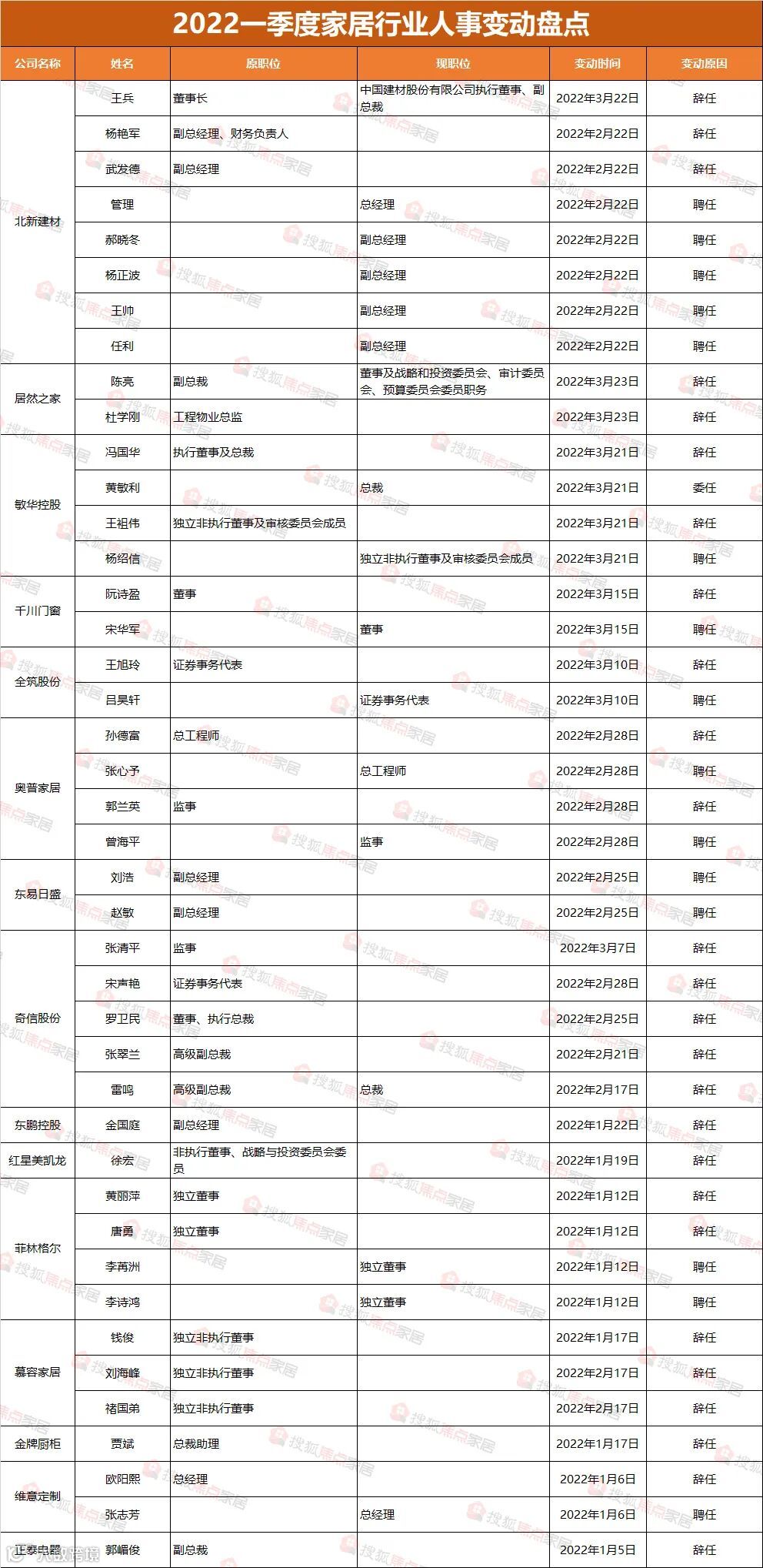 2022一季度家居行业人事变动:红星美凯龙、居然之家、敏华控股、金牌厨柜等15家企业在列