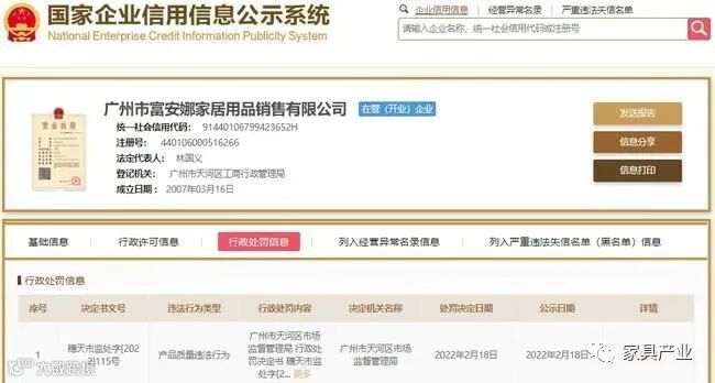近日,广州市富安娜家居用品销售有限公司因生产、销售不符合要求的产品被广州市天河区市场监管局处罚,罚没款合计10728元。