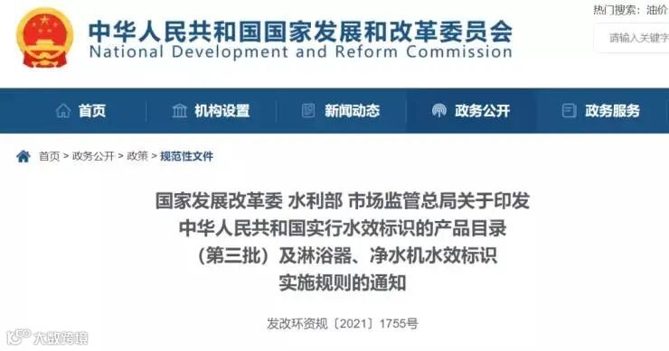 国家发展改革委、水利部、市场监管总局联合印发的《中华人民共和国实行水效标识的产品目录(第三批)及淋浴器、净水机水效标识实施规则》明确,自2022年7月1日起出厂的淋浴器产品必须加施水效标识,2022年7月1日前出厂或进口的产品,可延迟至2023年7月1日前加施。