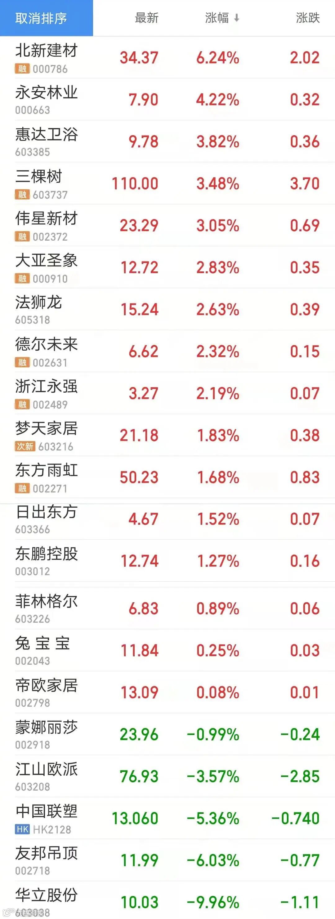 在此大趋势下,聚焦泛家居行业,搜狐焦点家居统计了包括家具、卖场、建材、定制、装修装饰等在内共45家企业的表现,28家企业“涨势喜人”,14家有所下跌,2家跌停。建材方面,16家上涨5家下跌,其中北新建材涨幅最高,为6.24%,华立股份跌幅最大,为9.96%。