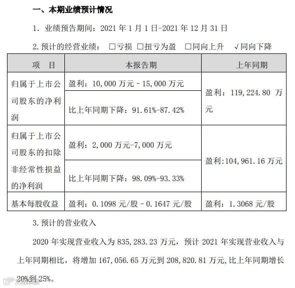 三棵树:在业绩预告中指出,2021年度公司营业收入预计较上年同期增长 40%左右。年报显示,三棵树营业收入分别是:2018年35.84亿元、2019年59.72亿元、2020年82亿元。按40%增长计算,2021年三棵树营业收入将达到114.8亿元,首次突破百亿大关,跻身为百亿级营收企业。
